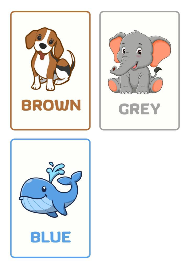 - Grey shows up in elephants, rainy skies, and sidewalks. Rounds out their color vocabulary nicely.