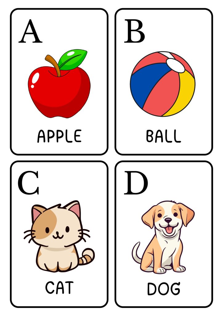 The animal cards in this alphabet set introduce toddlers to creatures they find absolutely fascinating. Two-year-olds naturally go crazy for animals, making these some of the most popular cards in the whole set.