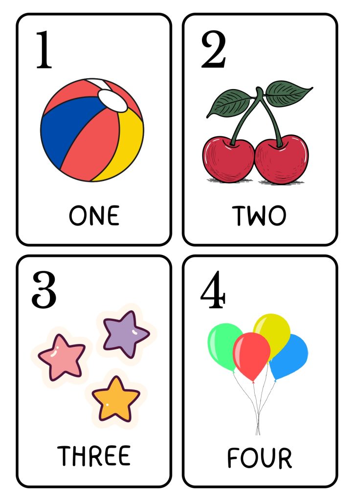 - Everything Counting: Count stuff with your toddler using number cards. Steps going upstairs, Cheerios on their high chair tray, bath toys floating in the tub.